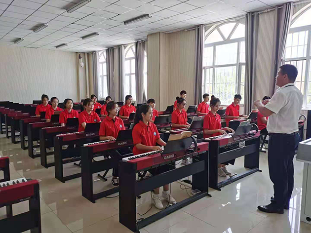 校内实训室:舞蹈训练室、幼儿游戏实训室、美术教育实训室、书法实训室、婴幼儿一日活动实训室、声乐实训室、奥尔夫教学法实训室、钢琴实训室等。